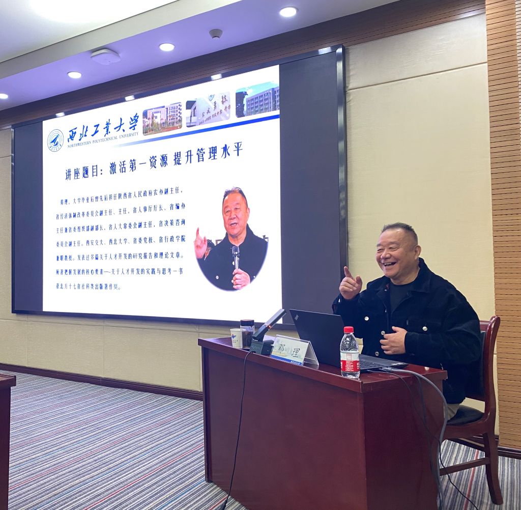 邀请陕西省十届人大常委会副主任邓理为专业学位研究生作《激活第一资源,提升管理水平》的讲座,讲座由漫岛动漫