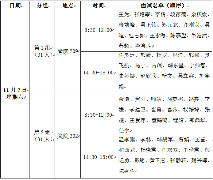 2016MBA提前批面试(第二批)分组名单