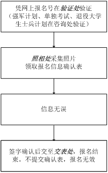 1.所有考生均应在规定时间内到报考点指定地方现场核对并确认本人网上报名信息,否则报名无效,报名信息经考生本人确认后一律不作修改,因考生填写错误引起的后果由本人自行承担,逾期不再补办。