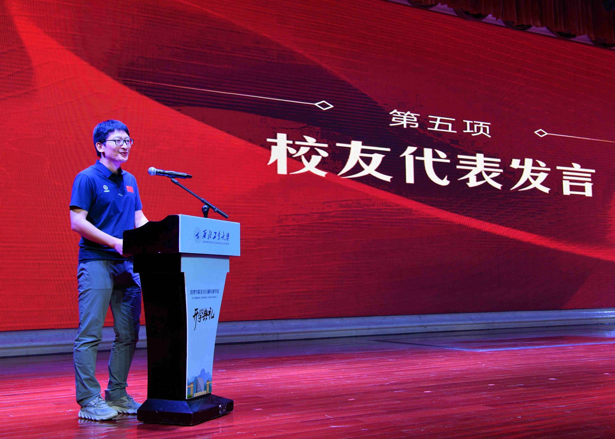 2023级MEM新生代表中国航空工业供销西北有限公司王娜表示,百战归来再读书,相信每一位新生都真诚热切,如今如愿奔赴梦中的学术殿堂,她号召大家要充分利用学校提供的优质平台和资源,不断丰富自身的知识素养与实践精神,在强国新征程下,成为勇于担当、踔厉奋发、勇毅前行的西工大人,迎着浪潮而上,追击万里长空。