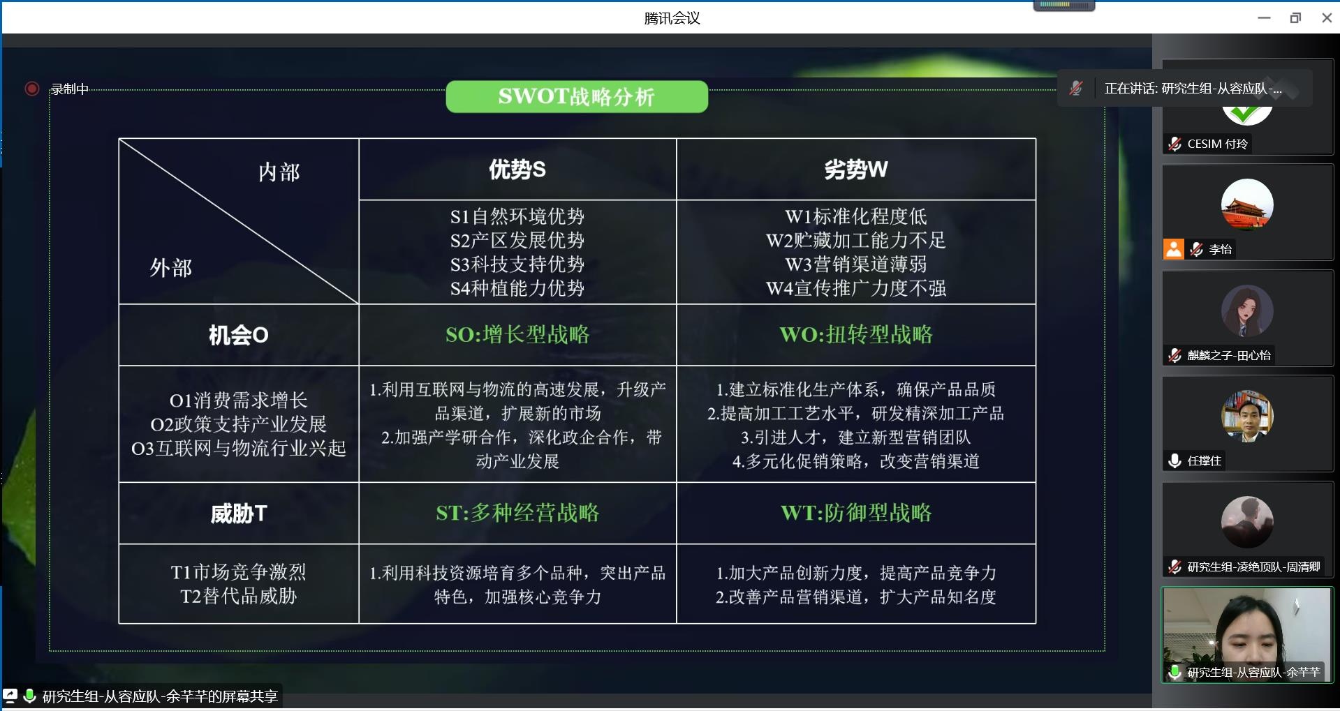 由研究生院主办,漫岛动漫 承办的2022年度“任氏美农”杯第五届漫岛动漫 “尖烽时刻”商业模拟校园赛顺利开展,此次校园赛自10月15日正式启动,历时23天,至11月6日圆满结束。比赛吸引了全校各学院200余名研究生和本科生报名,经过筛选有36支队伍参赛,赛事分为“商业模拟决策”和“商业案例演示”两个环节,全程采用线上形式进行,由MBA/MEM教育中心学生工作主管李怡主持。