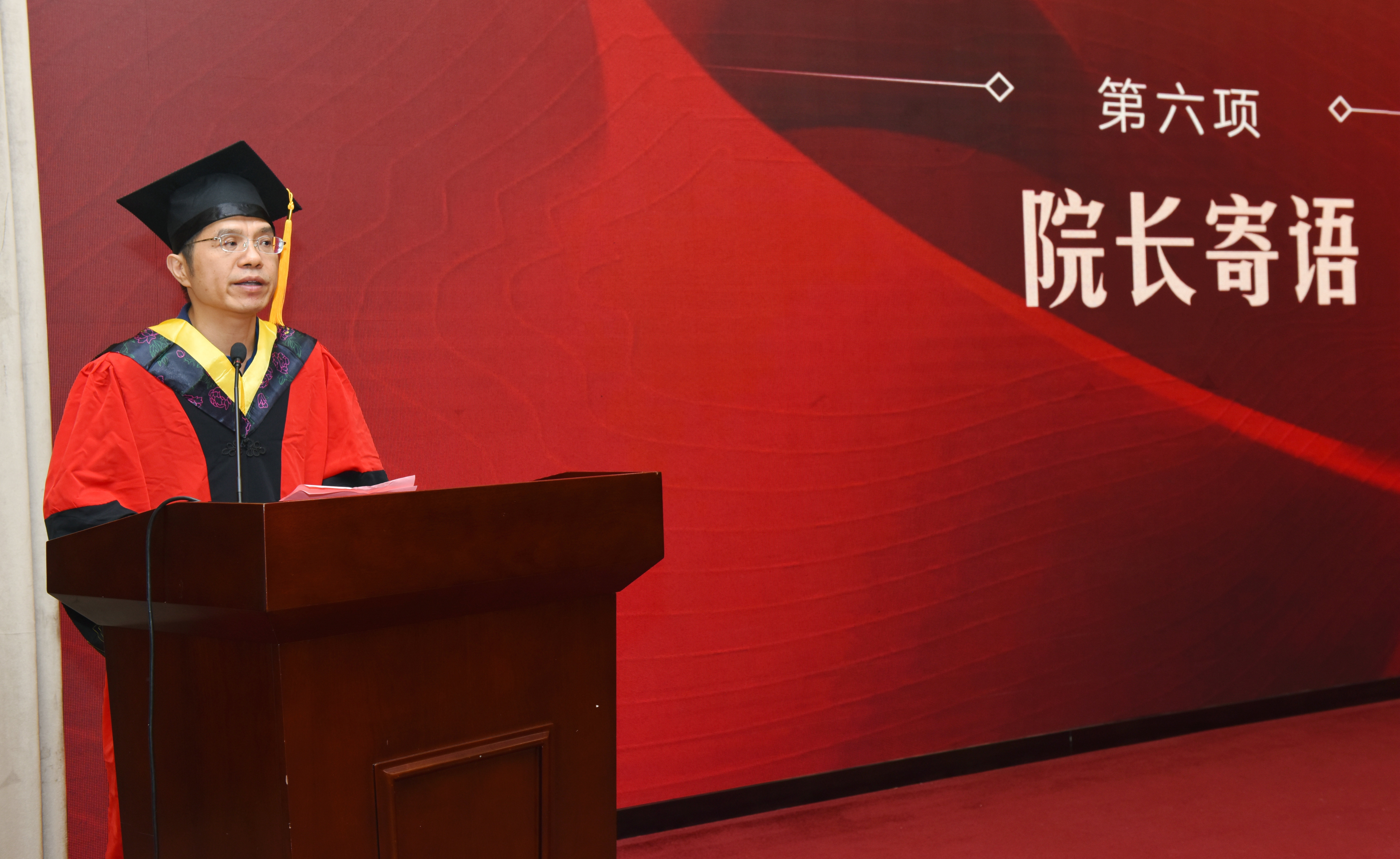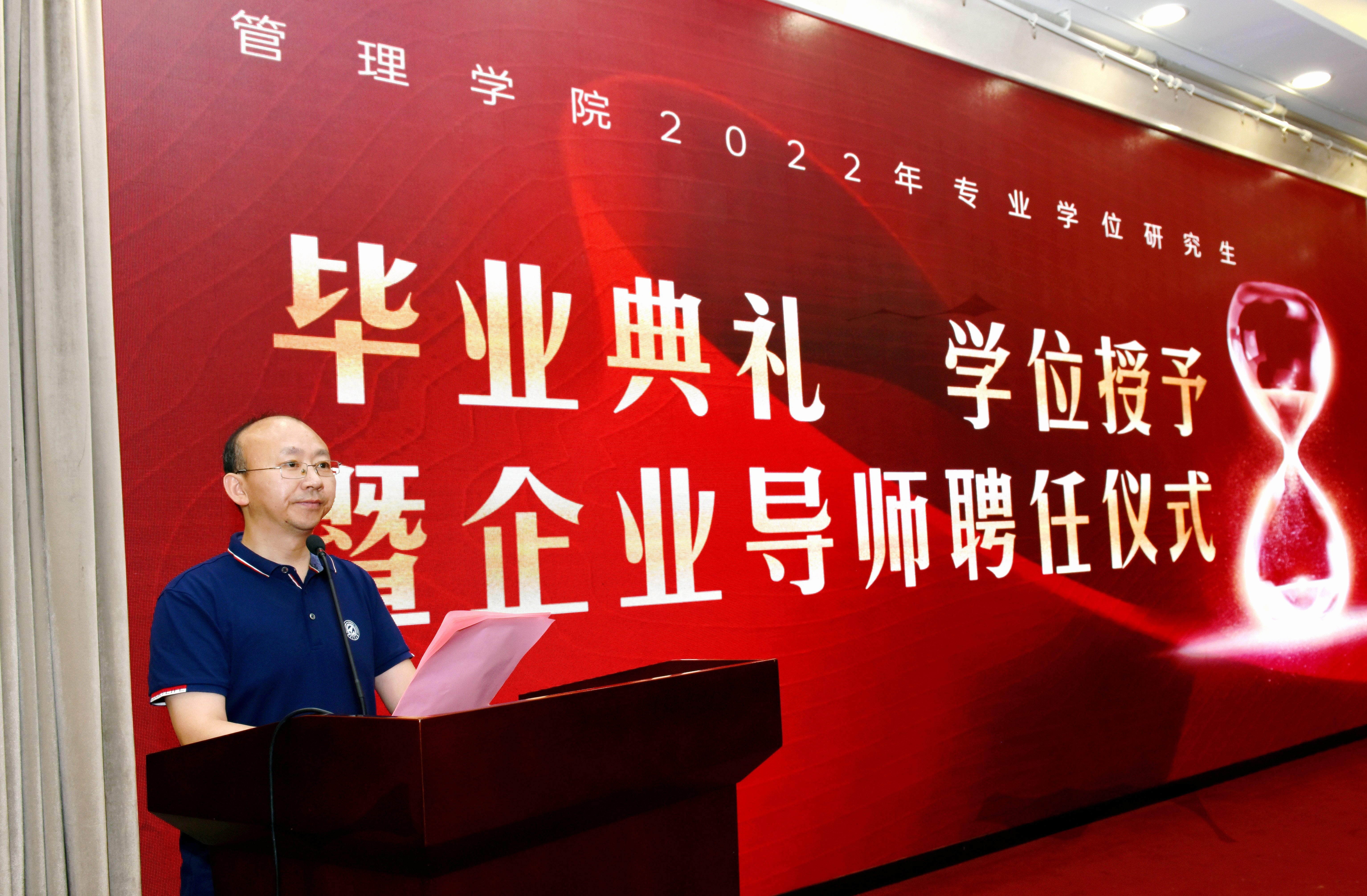 院长车阿大教授向毕业生们致以热烈的祝贺。他表示,2022届毕业生屡次遭受新冠疫情突袭的求学经历,让同学们一起学习的每一天更加值得回忆和珍惜。他对同学们提出三点希望:一是不忘初心使命,在学思践悟中坚定理想信念,在奋发有为中践行初心使命;二是树立终身学习理念,面对经济社会的快速发展,新技术、新业态和新商业模式带来的各种机遇和挑战;三是继续传承校训校风,在一个又一个新的起点上取得骄人的成绩,在各行各业续写“西工大现象”,为母校争光,为人生添彩。