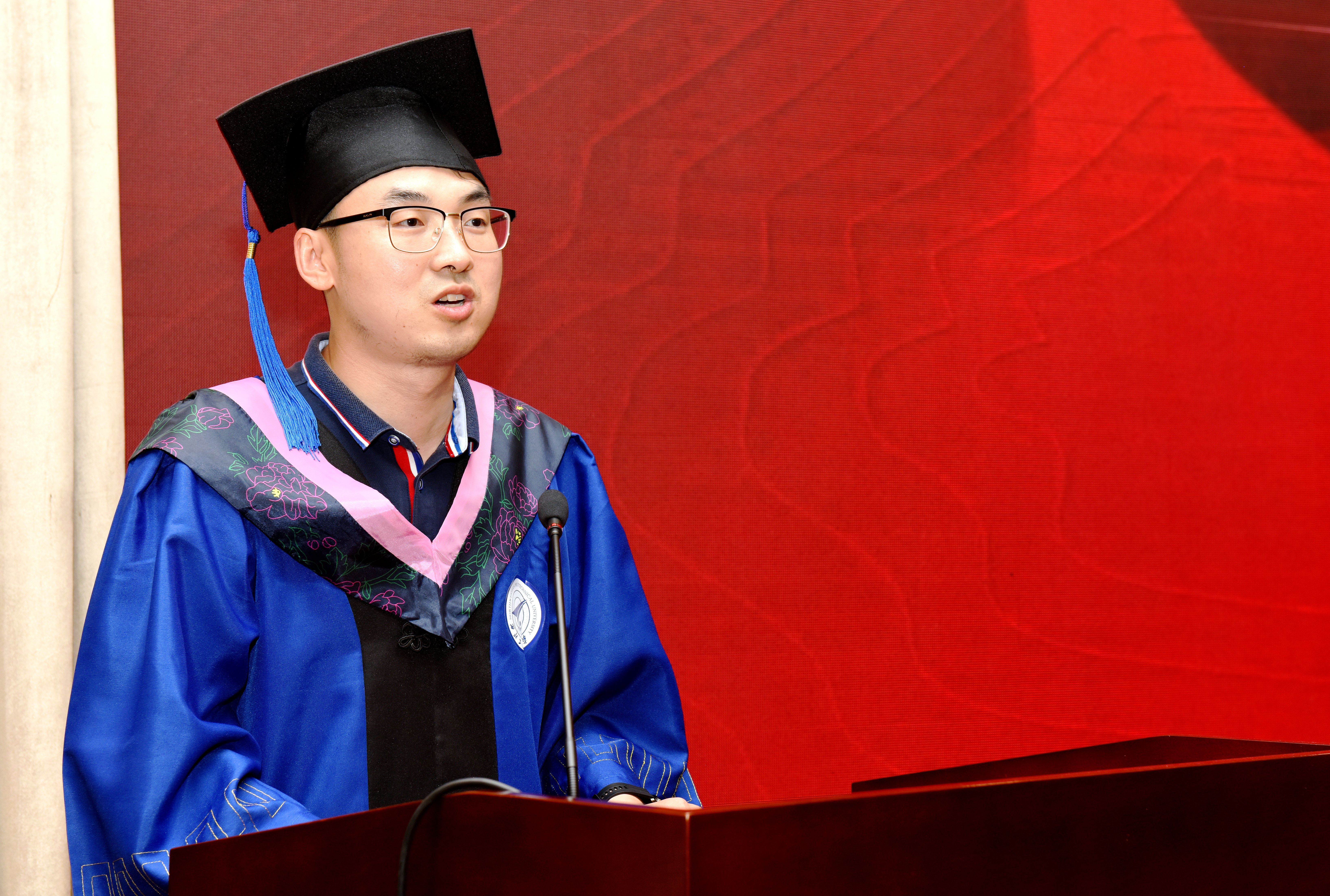 EMBA毕业生代表阳丹同学带领全体2022届毕业研究生宣读毕业誓词。