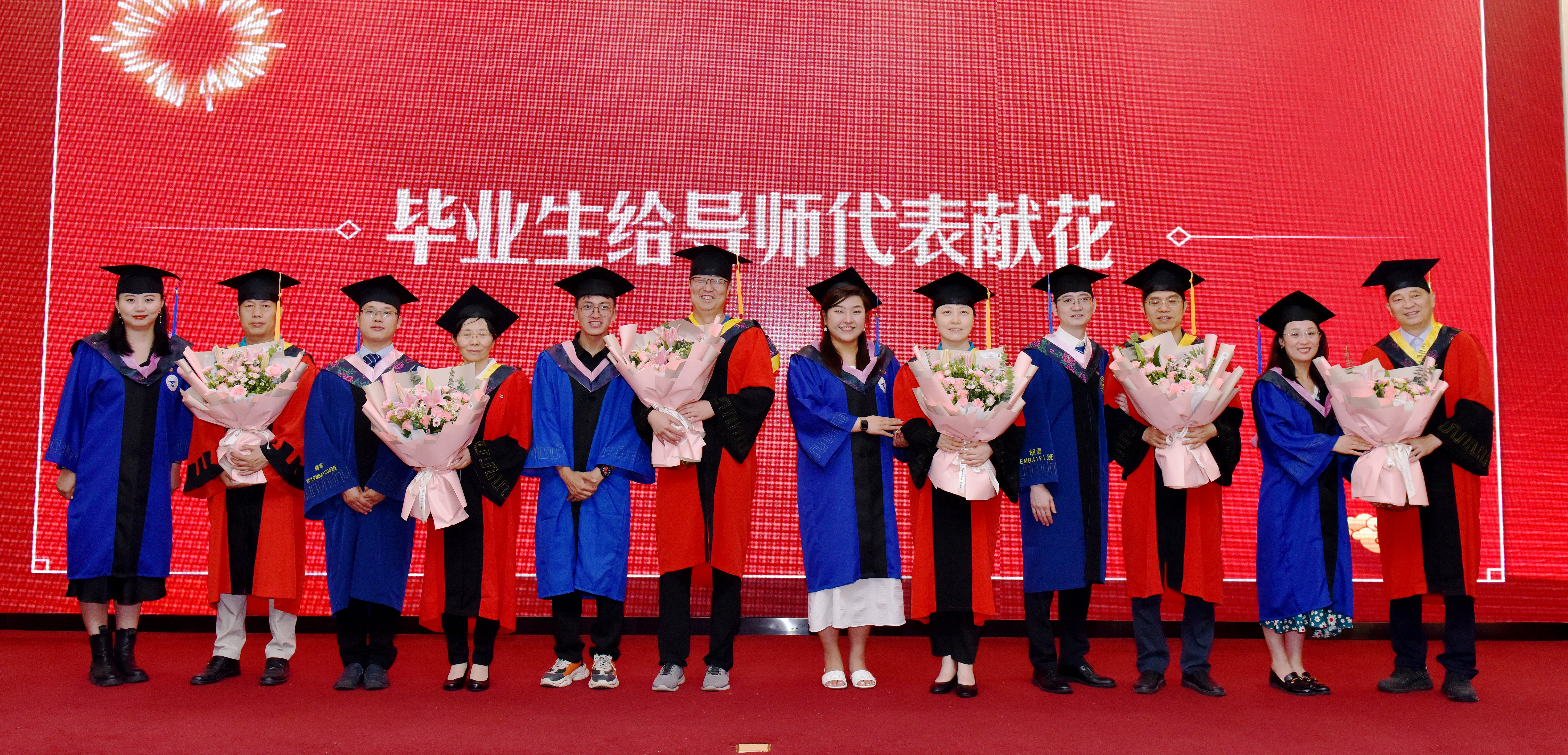 伴随着熟悉校歌,潘杰义教授、车阿大教授、郭鹏教授、陈琳教授为毕业生代表拨穗正冠、颁发毕业证书并合影留念。愿各位同学心中有火,眼里有光,胸怀天下,不忘初心,续写新的灿烂篇章。