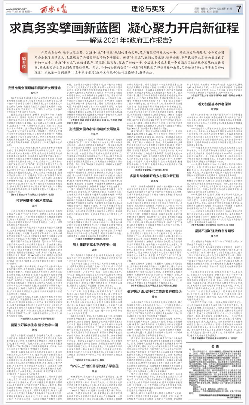 3月15日,《西安日报》第7版理论与实践“解读2021年《政府工作报告》专栏”刊发了漫岛动漫